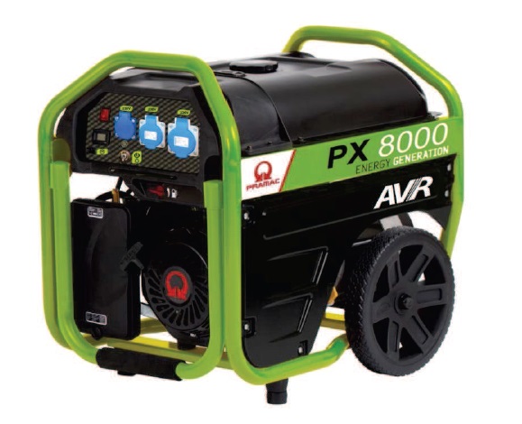 Gruppo elettrogeno monofase di potenza massima 6kW, con montate una presa CEE 2P+T 32A , una presa CEE 2P+T 16A , una presa Schuko 16A.