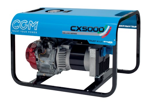 Gruppo Elettrogeno a benzina monofase da 5kVA pari 4.5kW – CGM CX5000E, motore Honda GX270 con regolatore di tensione AVR. Avviamento a strappo, potenza di spunto 5.5kVA, serbatoio da 15 litri.