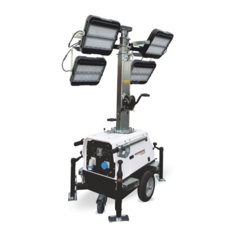 Noleggio Torre faro a Led con 4 fari a Led da 240W , altezza 6.7 metri, sollevamento manuale ad argano.