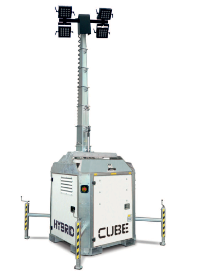 Torre faro Generac CUBE MH con 4 fari agli ioduri metallici da 1000W , altezza 8.4 metri , area illuminata 4.000 metri quadrati.
